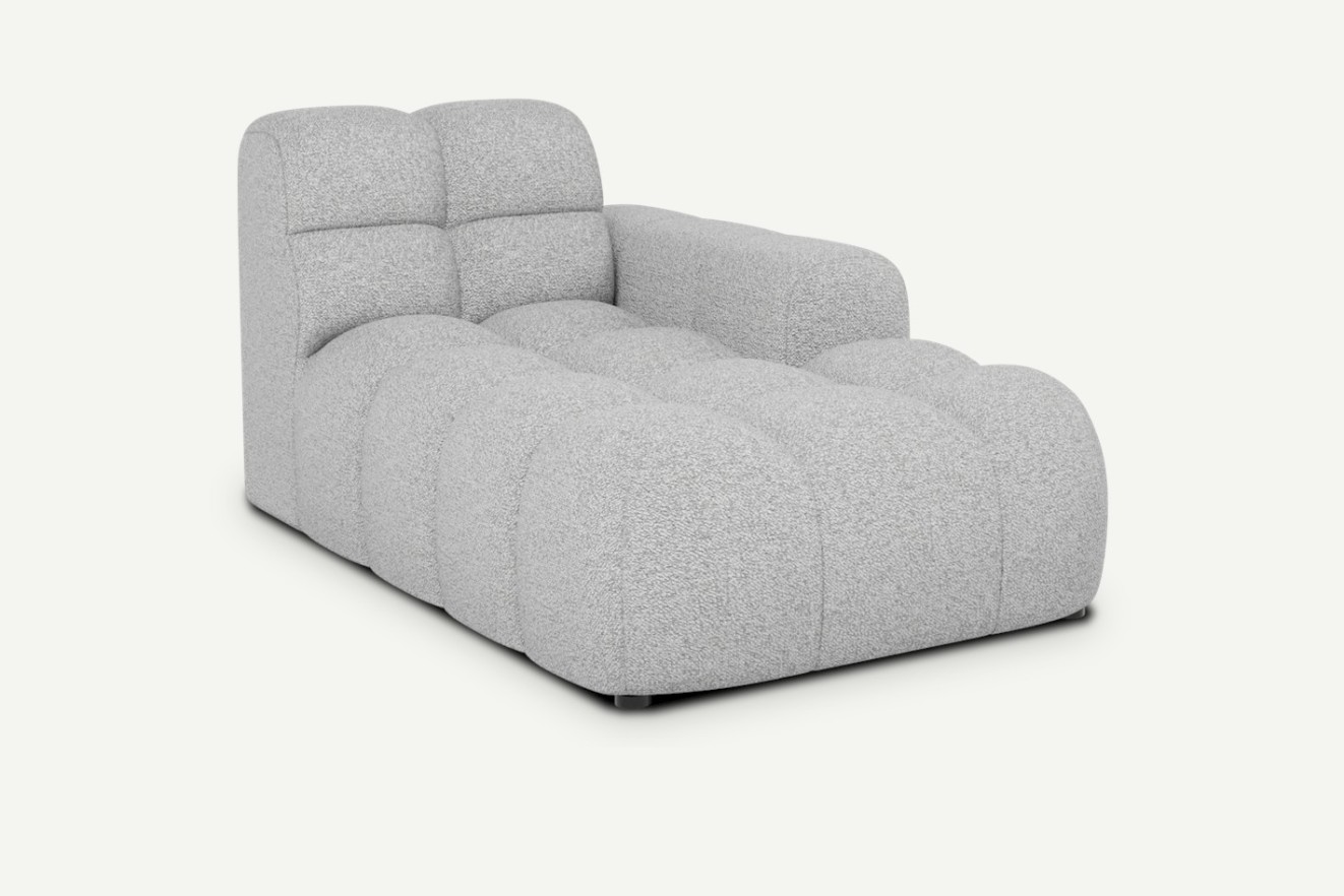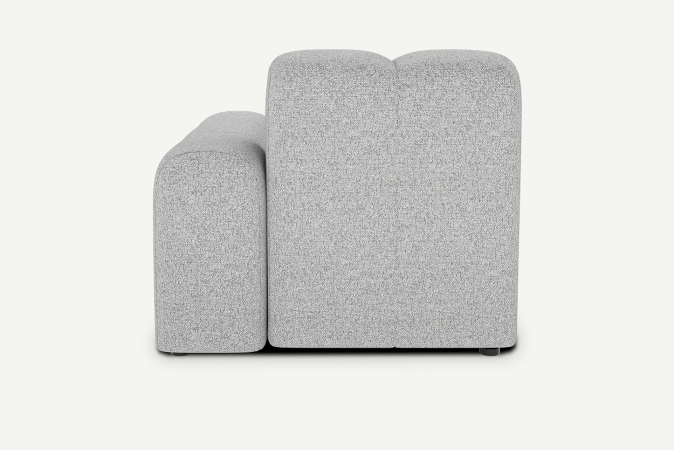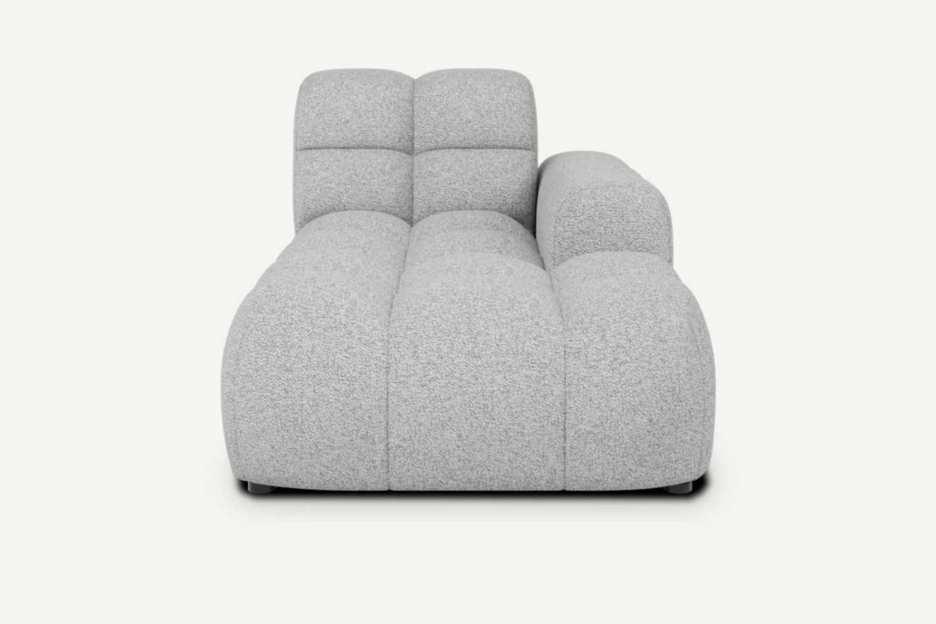Ten element został zaprojektowany z myślą o zakończeniu układu narożnego – świetnie sprawdza się jako boczne przedłużenie, które nadaje bryle lekkości i bardziej otwartego charakteru. Dzięki modułowej konstrukcji i systemowi mocowania typu "krokodylek" możesz łatwo połączyć szezlong z innymi segmentami z kolekcji Cloudy – element dostępny w dwóch wariantach: prawy/lewy.