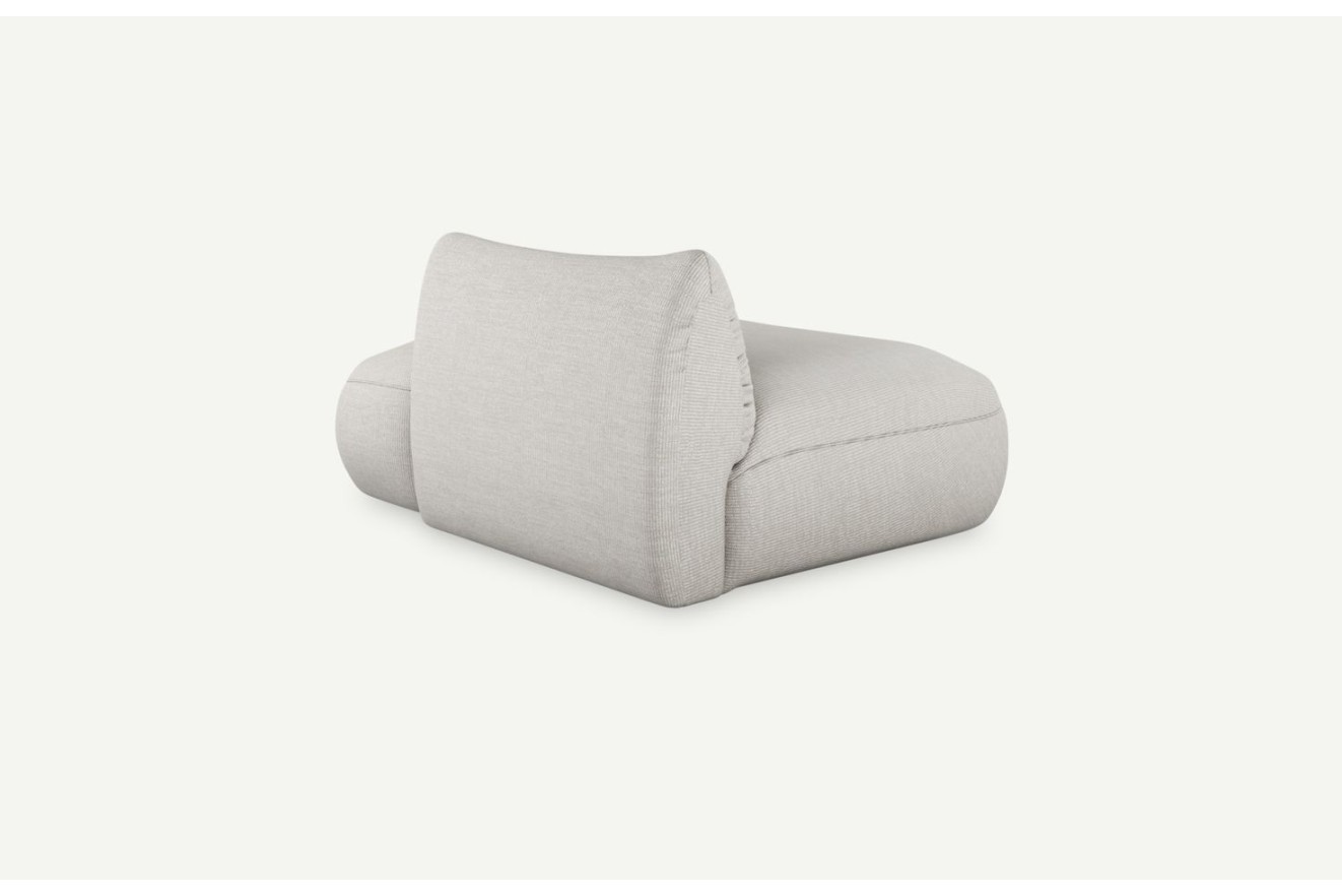 Ten moduł świetnie sprawdza się jako zakończenie narożnika, układu prostego lub bardziej rozbudowanej kompozycji. Profilowane oparcie płynnie łączy się z siedziskiem, dzięki czemu całość prezentuje się lekko i spójnie, niezależnie od wybranego ustawienia. Moduł zakończeniowy pozwala łatwo dopasować mebel do indywidualnego rytmu życia domowników — niezależnie od tego, czy zestaw ma pełnić funkcję rodzinnej strefy relaksu, czy miejsca spotkań w mniejszym salonie.