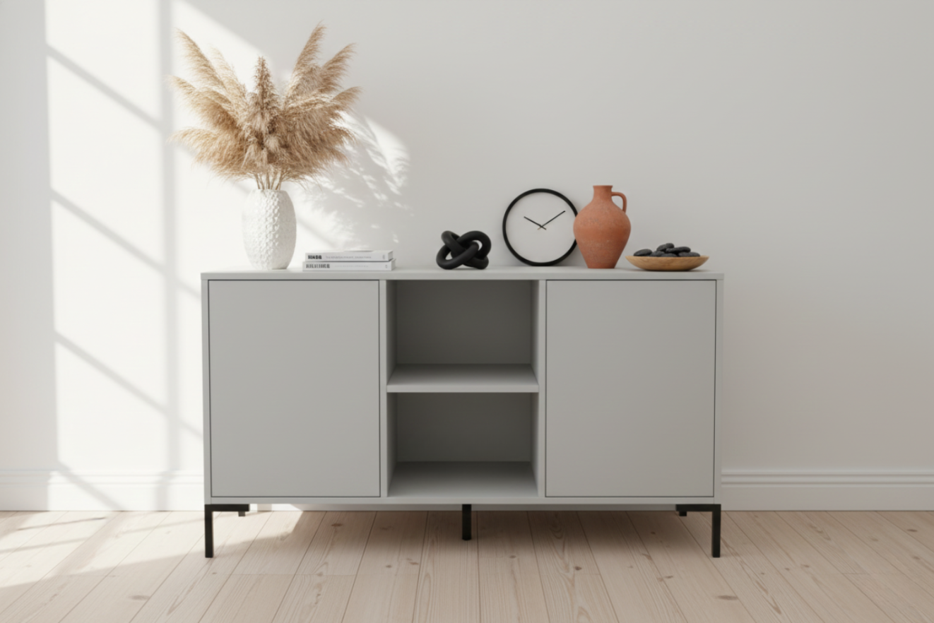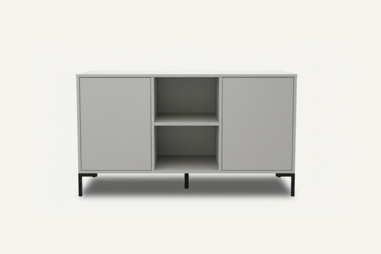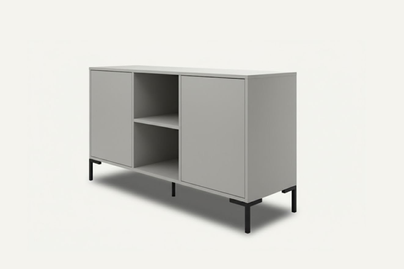 Uniwersalna komoda o prostej formie, oferująca funkcjonalne miejsce do przechowywania w każdym wnętrzu. Przemyślany układ szafek i półek zapewnia wygodę użytkowania, a stabilna konstrukcja gwarantuje trwałość. Mebel dostarczany jest w całości i nie wymaga montażu.