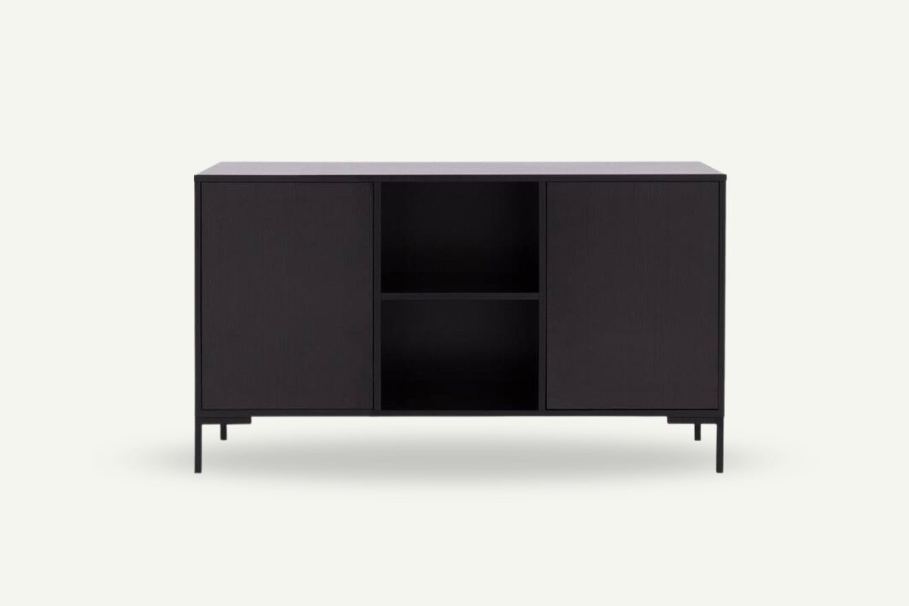 Uniwersalna komoda o prostej formie, oferująca funkcjonalne miejsce do przechowywania w każdym wnętrzu. Przemyślany układ szafek i półek zapewnia wygodę użytkowania, a stabilna konstrukcja gwarantuje trwałość. Mebel dostarczany jest w całości i nie wymaga montażu.