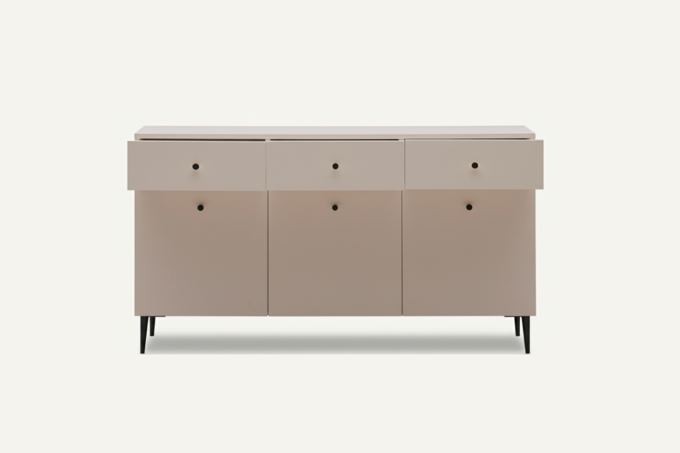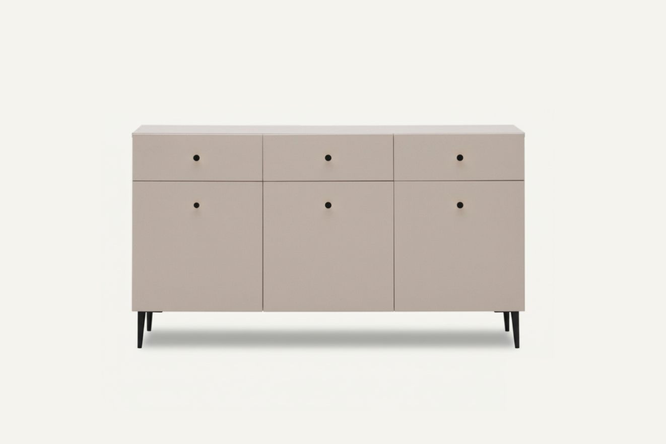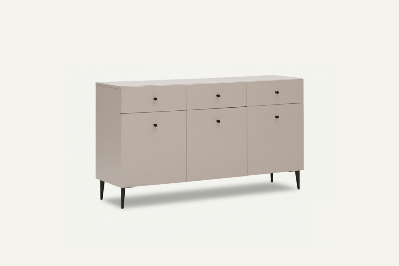 Komoda Maya została zaprojektowana jako wszechstronne rozwiązanie do przechowywania, sprawdzające się zarówno w przestrzeni dziennej, jak i w domowym gabinecie czy jadalni. Jej duża pojemność pozwala wygodnie uporządkować dokumenty, akcesoria, tekstylia lub drobne elementy wyposażenia, a jednocześnie zachować estetyczny wygląd wnętrza.