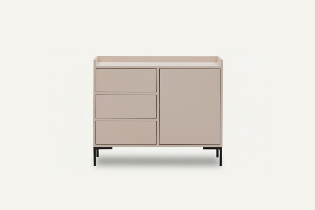 Komoda Klara w wersji z systemem push to open to kompaktowy mebel zaprojektowany z myślą o funkcjonalnych wnętrzach. Zastosowanie frontów otwieranych na lekki nacisk sprawia, że mebel pozostaje wolny od uchwytów, co nadaje mu czysty, nowoczesny charakter. Dzięki takiemu rozwiązaniu komoda dobrze łączy się z aranżacjami minimalistycznymi, skandynawskimi i współczesnymi.