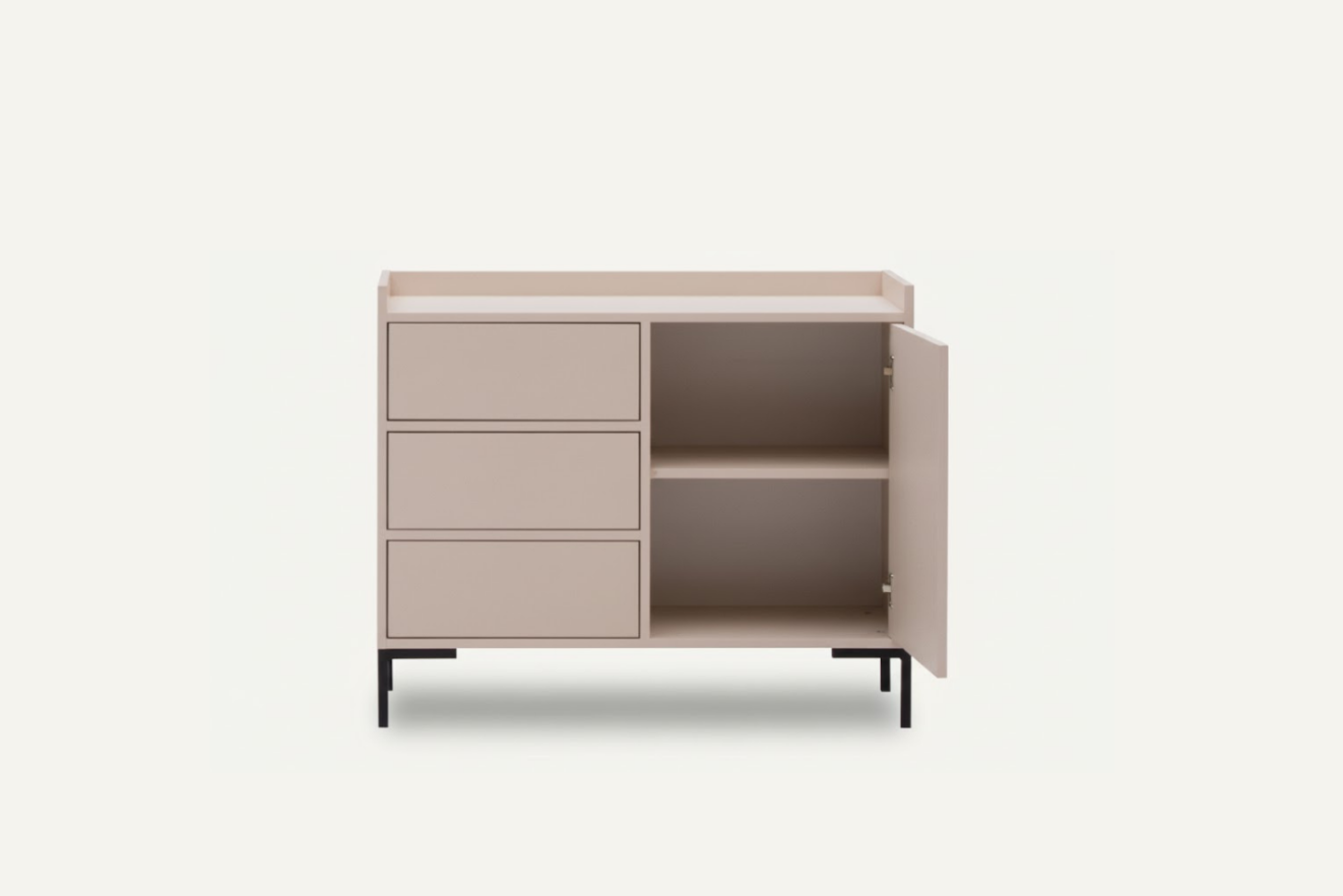 Mała komoda Klara z mechanizmem push to open została zaprojektowana z myślą o użytkownikach, którzy preferują prostotę i wygodę. Mechanizm otwierania na dotyk eliminuje potrzebę stosowania uchwytów, dzięki czemu fronty pozostają jednolite i estetyczne. Mebel świetnie odnajduje się we wnętrzach nowoczesnych, minimalistycznych oraz tych utrzymanych w lekkim, uporządkowanym stylu.