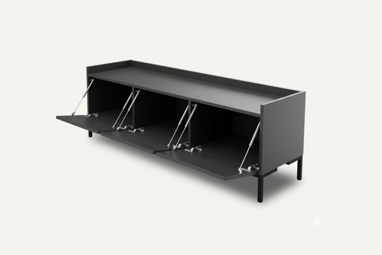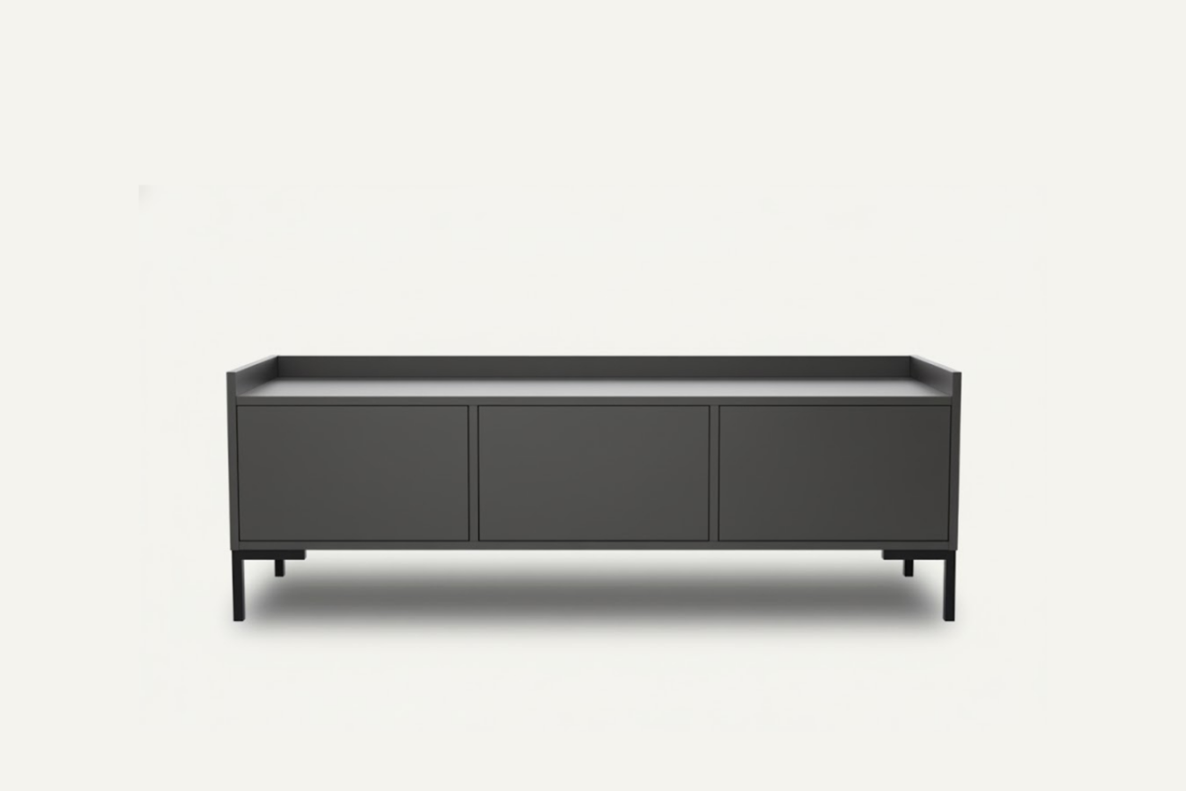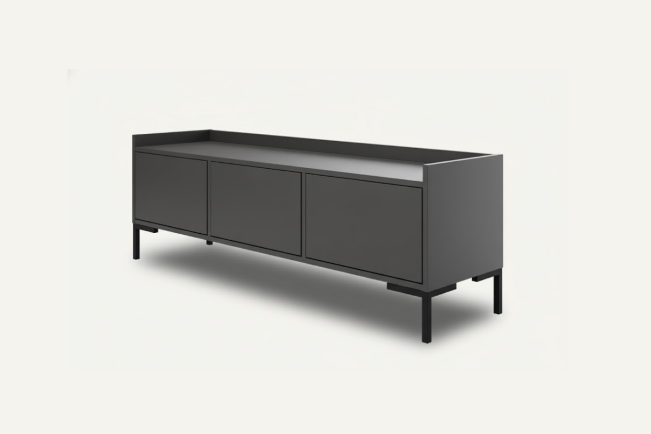 Szafka RTV Klara została zaprojektowana z myślą o funkcjonalnej organizacji strefy telewizyjnej. Zastosowanie systemu push to open umożliwia otwieranie szafek lekkim naciśnięciem, dzięki czemu fronty pozostają całkowicie gładkie i pozbawione uchwytów. Takie rozwiązanie nadaje meblowi nowoczesny, uporządkowany charakter i ułatwia utrzymanie czystości.