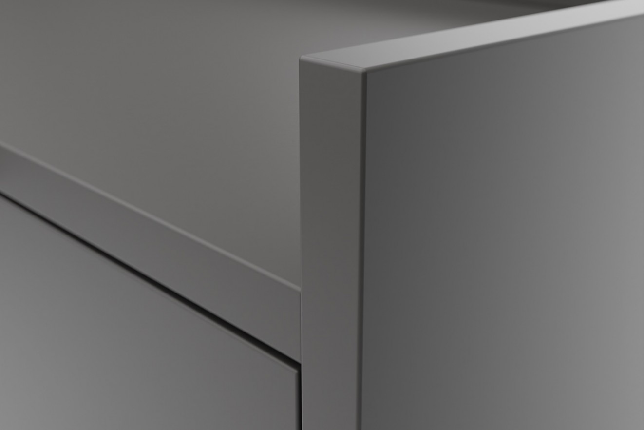Model wykonano z trwałej płyty laminowanej, a obrzeża zabezpieczono ABS-em zwiększającym odporność na uszkodzenia. Prosta forma i lekki wygląd sprawiają, że Klara dobrze wpasowuje się zarówno w małe, jak i większe pomieszczenia. Minimalistyczne wykończenie i system push to open podkreślają nowoczesny charakter mebla, jednocześnie zapewniając wysoki komfort użytkowania.