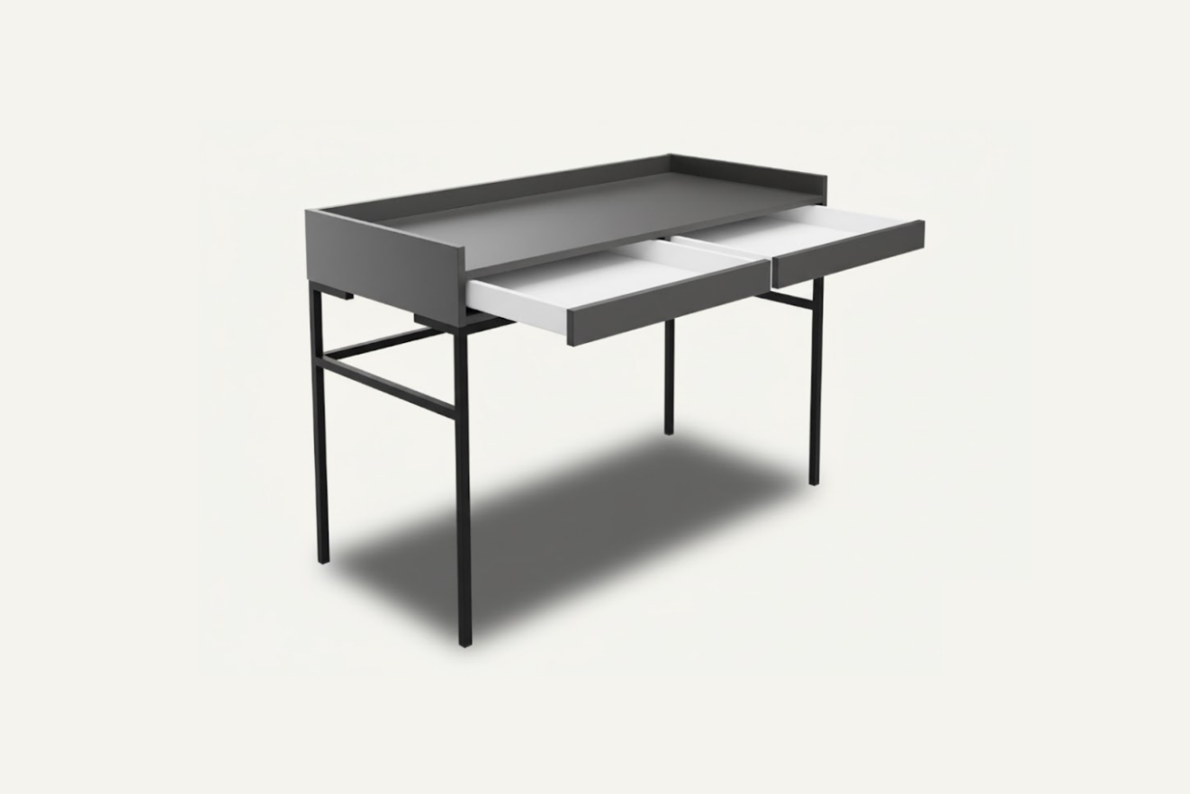 Szuflada ukryta pod blatem zapewnia przestrzeń na najpotrzebniejsze akcesoria — przybory do pisania, dokumenty, ładowarki czy drobne dodatki. Dzięki temu blat pozostaje czysty, a samo biurko jest wygodne do codziennego użytkowania. Z kolei jako konsola może pełnić funkcję eleganckiego miejsca na dekoracje, lampę czy organizację drobiazgów w przedpokoju.