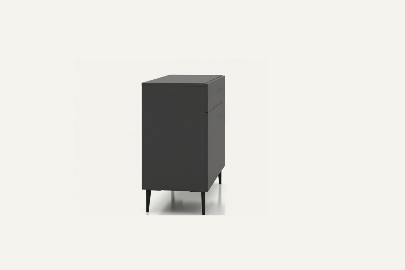 Kompaktowa komoda Gaya to propozycja dla osób szukających praktycznego mebla o minimalistycznym wykończeniu. Model wyposażono w system push to open, który zastępuje tradycyjne uchwyty i pozwala otwierać fronty lekkim naciśnięciem. Dzięki temu bryła pozostaje czysta i estetyczna, niezależnie od wybranego koloru.