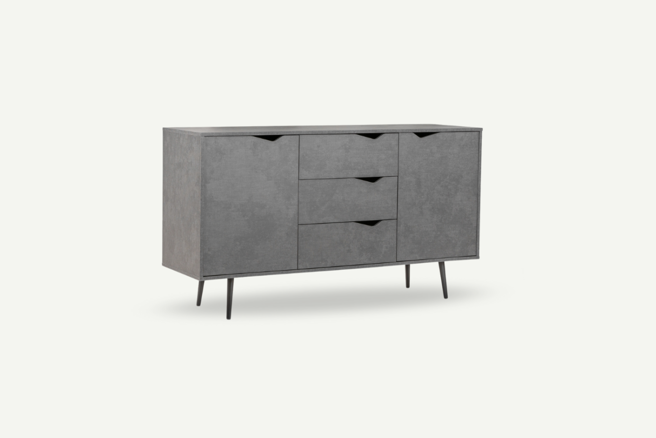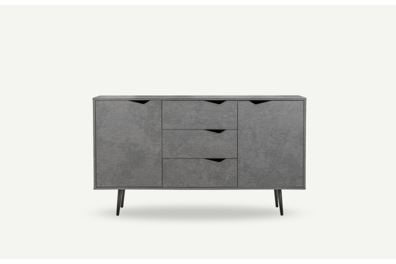 Komoda Darkle 150 trzydrzwiowa w szarym kolorze z czarnymi nóżkami została zaprojektowana z myślą o codziennym użytkowaniu i prostych, nowoczesnych aranżacjach. Jej forma jest stonowana i uporządkowana, dzięki czemu łatwo dopasować ją zarówno do minimalistycznych, jak i bardziej klasycznych wnętrz.