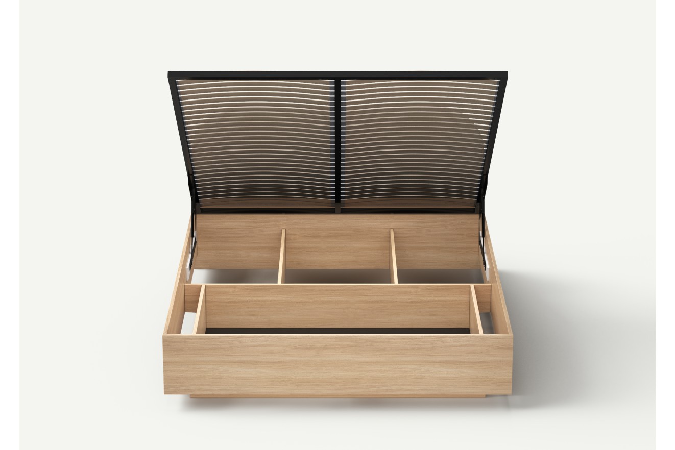 Łóżko MILA dla materaca 160cm w kolorze dąb piaskowy to wygodne rozwiązanie dla par. Wymiary 166x210x97 cm zapewniają przestronny odpoczynek dla dwóch osób. Wyposażone w stelaż metalowy podnoszony i pojemnik na pościel optymalizujący przestrzeń sypialni. Zagłowie tapicerowane tkaniną Chill ME gwarantuje komfort. Wykonane z wysokiej jakości płyty laminowanej odpornej na zarysowania i promieniowanie UV. Idealnie komponuje się z innymi meblami z kolekcji MILA.'