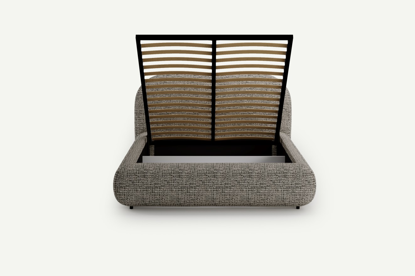 Wygodny model z pojemnym schowkiem i stelażem 50 listew, idealny do mniejszych sypialni. Miękkie, zaokrąglone wezgłowie oraz tapicerowana forma nadają mu nowoczesny, przytulny wygląd.