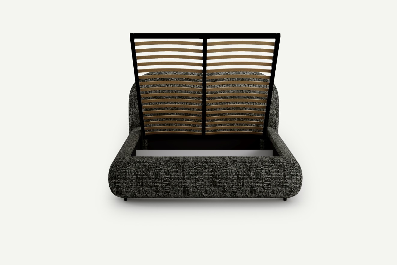 Model z pojemnym schowkiem na pościel i stelażem 50 listew, zaprojektowany z myślą o wygodnym śnie i estetycznej aranżacji sypialni. Miękkie, zaokrąglone wezgłowie nadaje mu przytulny, nowoczesny charakter.