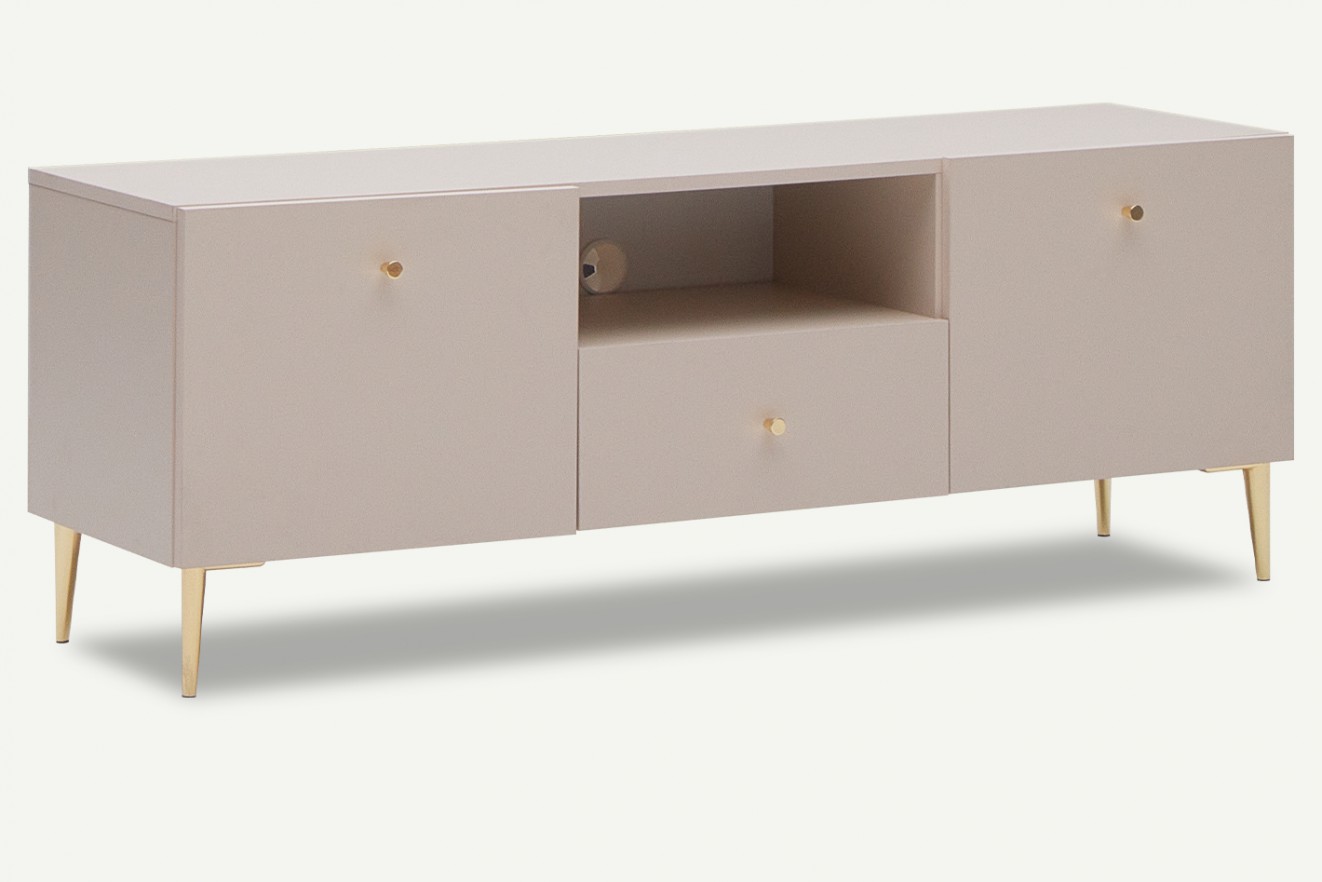 Szafka RTV Maya została zaprojektowana z myślą o wygodnej organizacji strefy multimedialnej w domu. Jej nowoczesna, prosta konstrukcja dobrze wpisuje się w różne typy aranżacji — od minimalistycznych po bardziej klasyczne. Dzięki odpowiedniej szerokości mebel oferuje dużo przestrzeni użytkowej, jednocześnie zachowując lekką i elegancką formę.