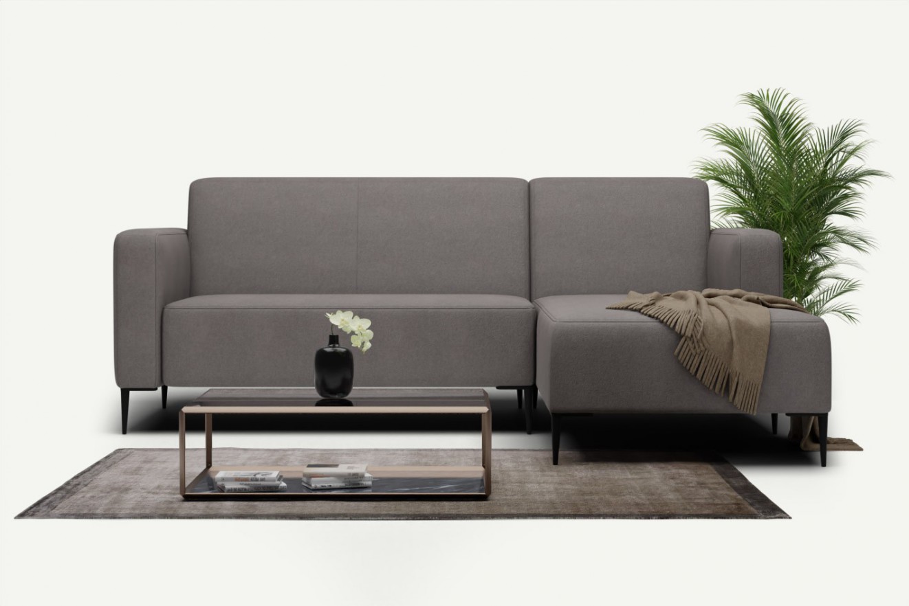 Mały narożnik Bolder to doskonała propozycja dla osób, które szukają stylowego, ale niezbyt dużego mebla wypoczynkowego. Jego prosta, smukła forma i wysokie czarne nogi sprawiają, że prezentuje się lekko i elegancko. To mebel, który nie przytłacza wnętrza, a jednocześnie zapewnia komfortowy odpoczynek po długim dniu.