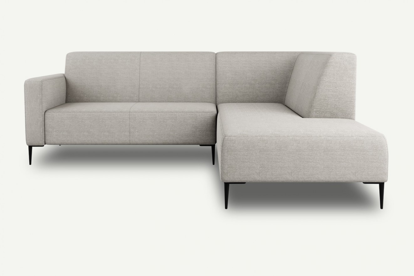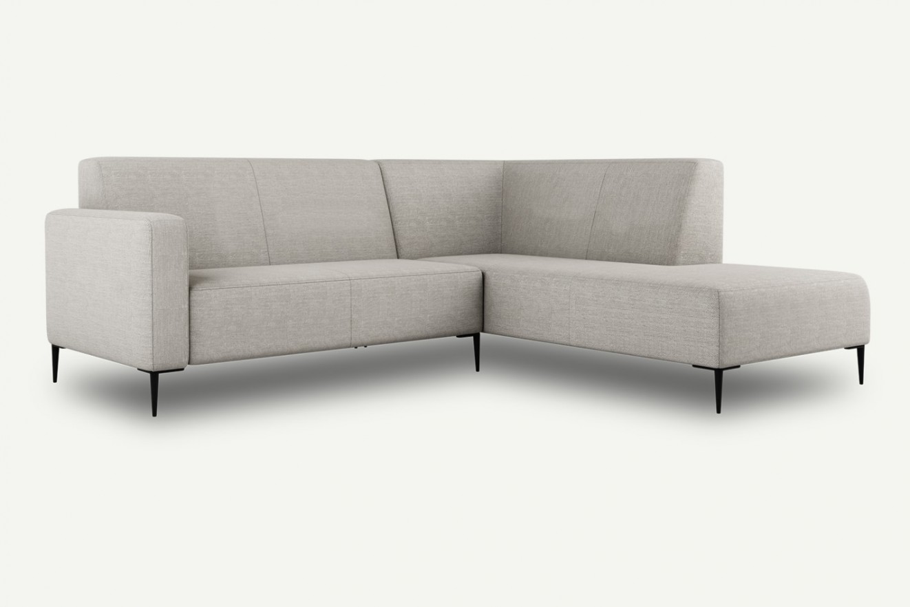 Kompaktowy narożnik Bolder do salonu na czarnych metalowych nogach