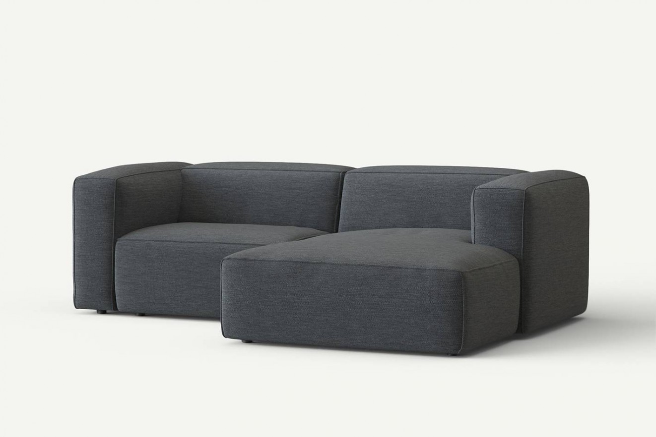 Moved XL jest to większa wersja standardowego narożnika Moved ,który jest szerszy, głębszy oraz posiada dłuższy szezlong. Widoczna jest też różnica w wyglądzie otomany , ponieważ część została uszyta w całości bez dzielenia pufy.