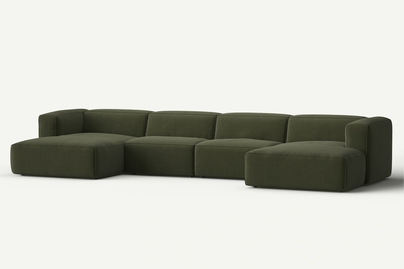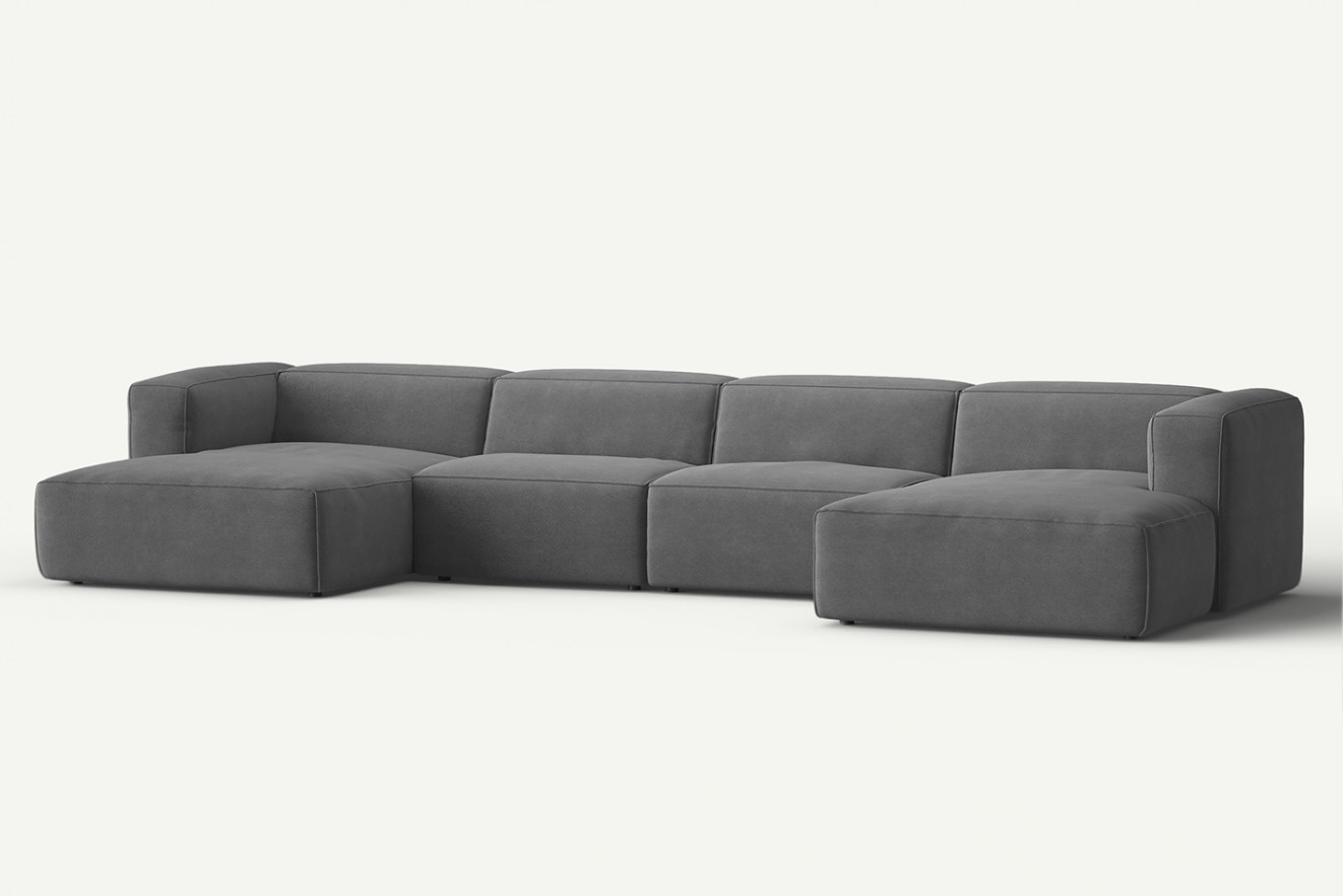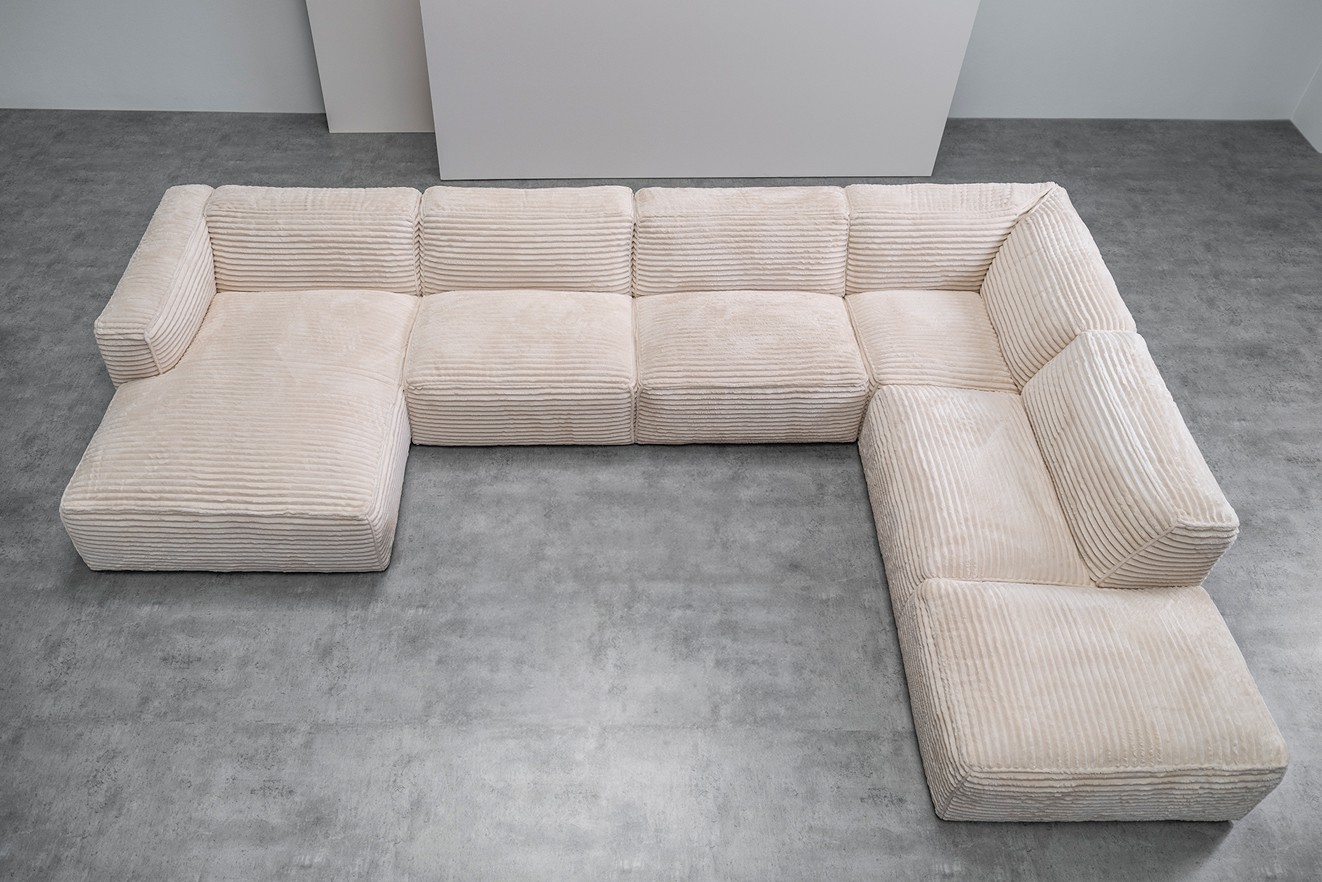Moved XL w układzie U to uosobienie komfortu i wszechstronności, idealny dla tych, którzy pragną stworzyć przestrzeń dopasowaną do swojego stylu życia. Jego modułowa konstrukcja pozwala na dowolne aranżowanie elementów, dzięki czemu możesz dostosować układ mebla do swojego wnętrza oraz potrzeb – niezależnie od tego, czy masz duży salon, czy mniejsze mieszkanie.  Konfigurowania poszczególnych modułów pozwala na tworzenie różnych układów – od klasycznego narożnika po większe, rozbudowane sofy, idealne do wspólnego relaksu z rodziną czy przyjaciółmi.