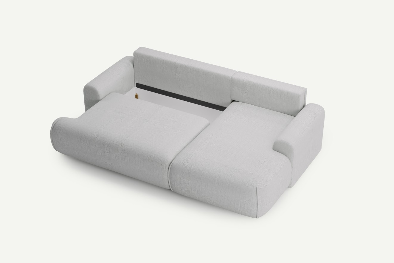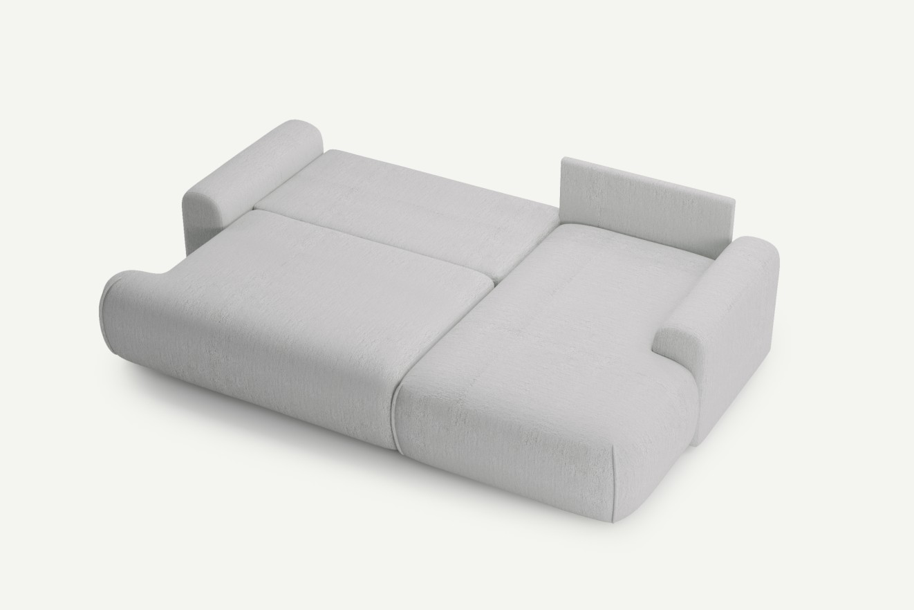 Model został wyposażony w funkcję spania typu DL, dzięki której szybko zamienia się w wygodne miejsce do snu. Powierzchnia spania 150 x 205 cm zapewnia komfortowy wypoczynek, a pojemnik na pościel pomaga utrzymać porządek i lepiej wykorzystać przestrzeń.