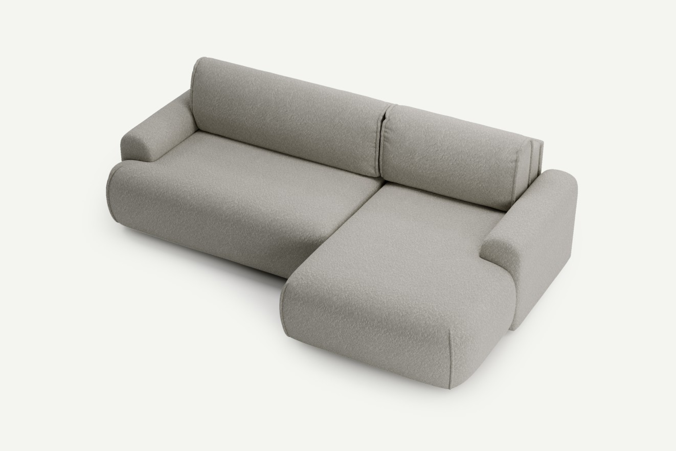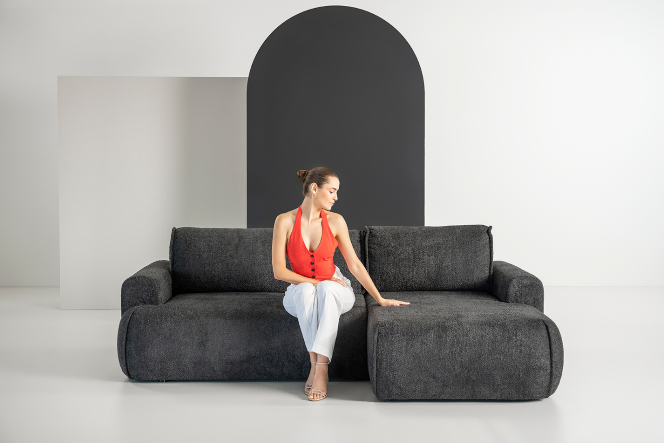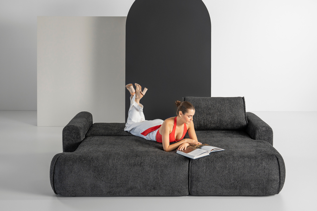 Sofa Softy doskonale sprawdzi się zarówno w nowoczesnych, jak i minimalistycznych wnętrzach – to mebel, który wygląda świetnie z każdej strony i równie dobrze sprawdza się w roli głównej strefy wypoczynku, jak i wygodnego łóżka.