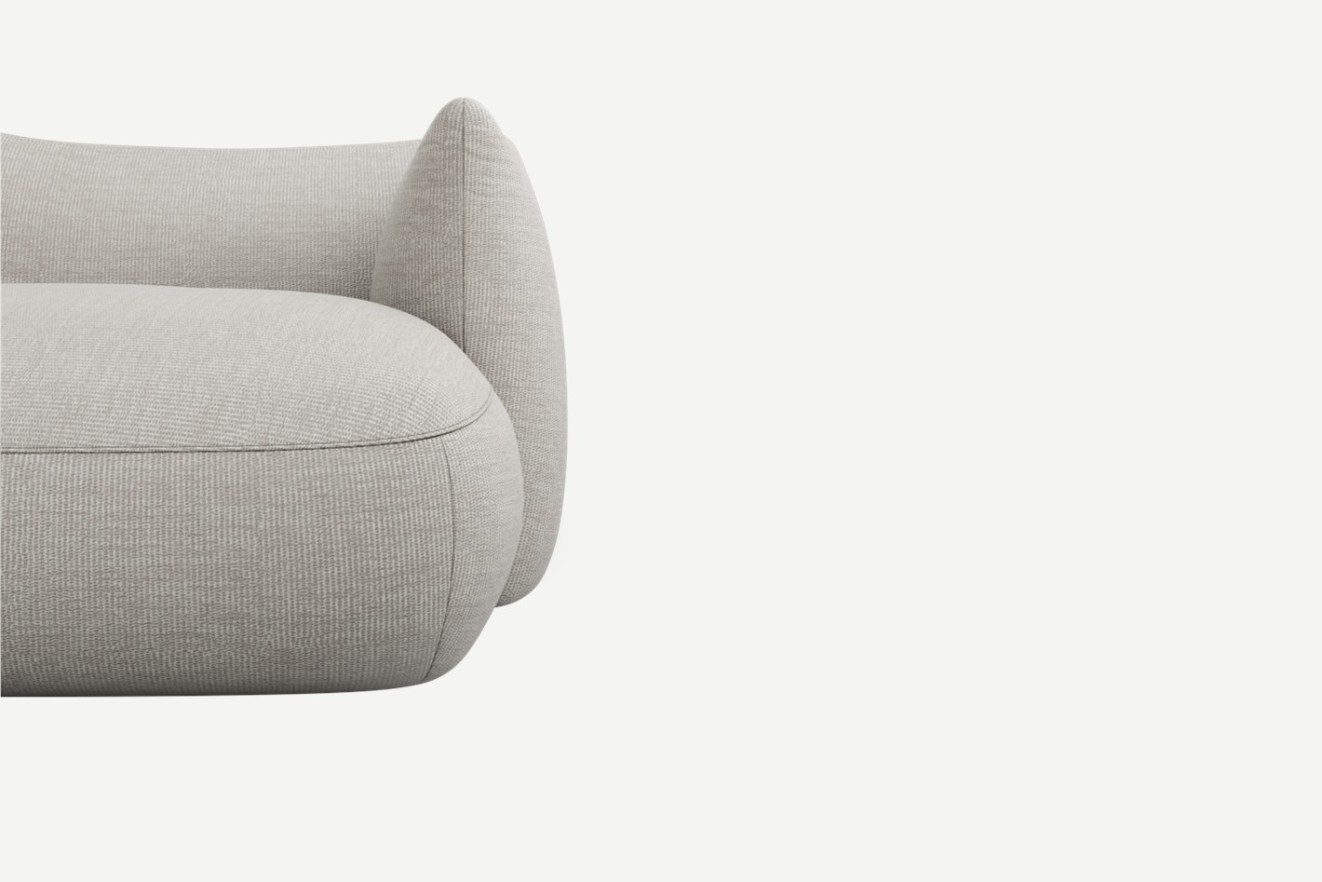 Narożnik Cosy wyróżnia się charakterystyczną, miękką formą z delikatnie zaokrąglonymi oparciami, które nadają mu nowoczesny, lecz bardzo domowy wygląd. Konstrukcja zapewnia stabilne podparcie, a jednocześnie zachowuje przyjemną elastyczność siedzisk, dzięki czemu mebel dopasowuje się do użytkownika.