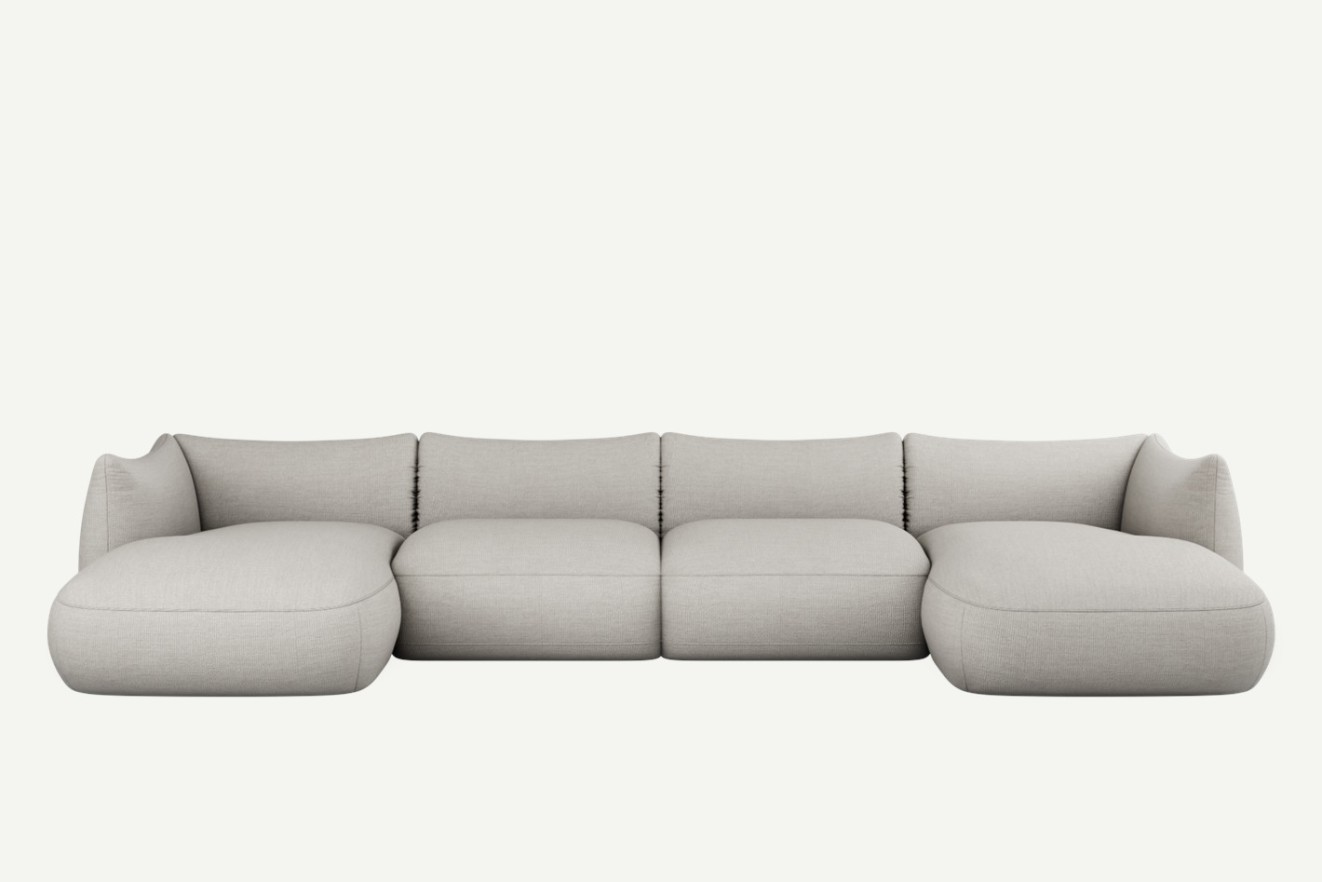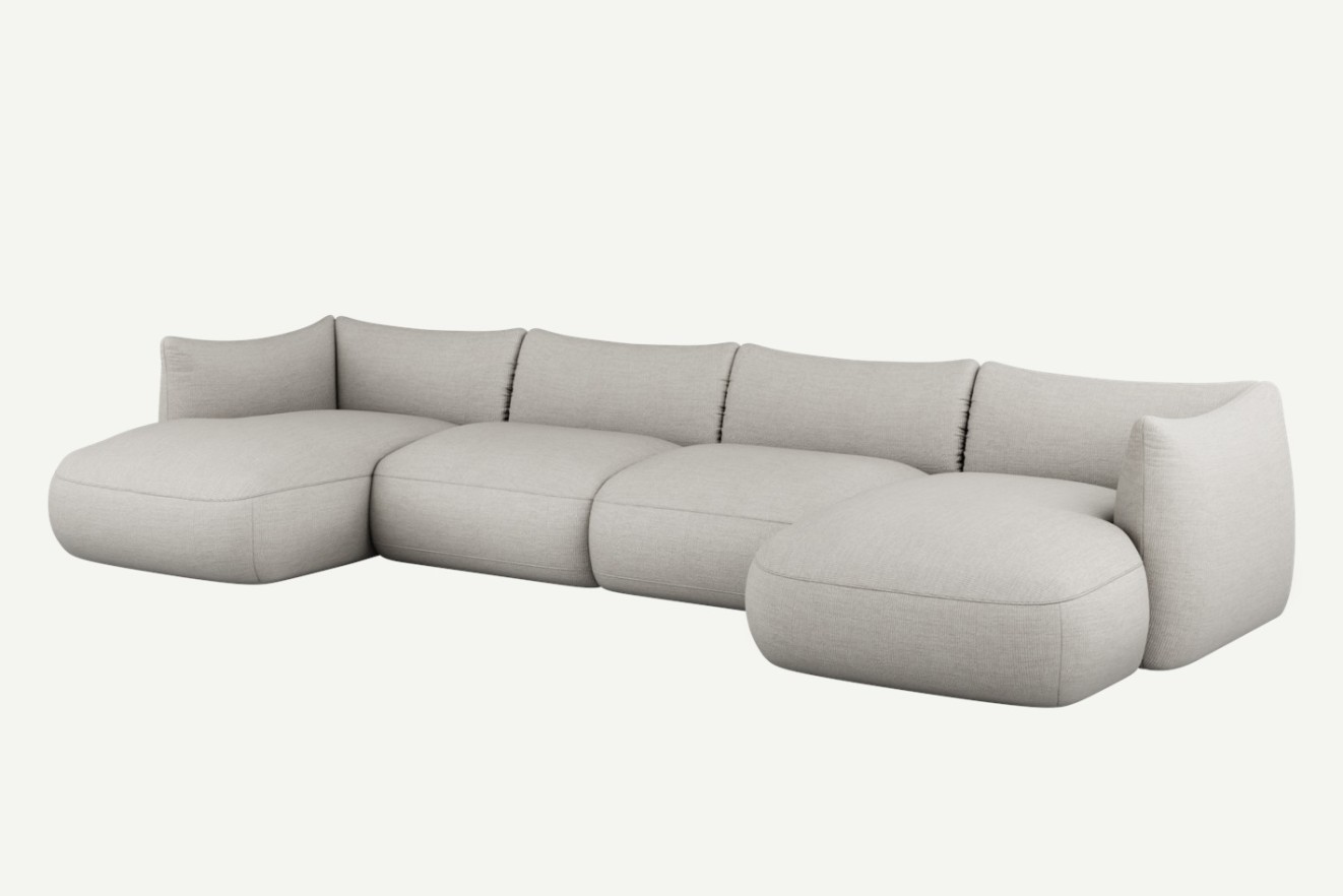 Układ w kształcie litery U tworzy obszerną strefę relaksu, idealną dla rodzin oraz osób, które lubią spędzać czas z bliskimi. Dwie szerokie otomany na zakończeniach zapewniają dodatkową przestrzeń do leżenia, a środkowe siedziska gwarantują pełen komfort podczas codziennego użytkowania. To mebel, który świetnie sprawdza się zarówno podczas wieczornego oglądania filmów, jak i podczas spotkań towarzyskich.