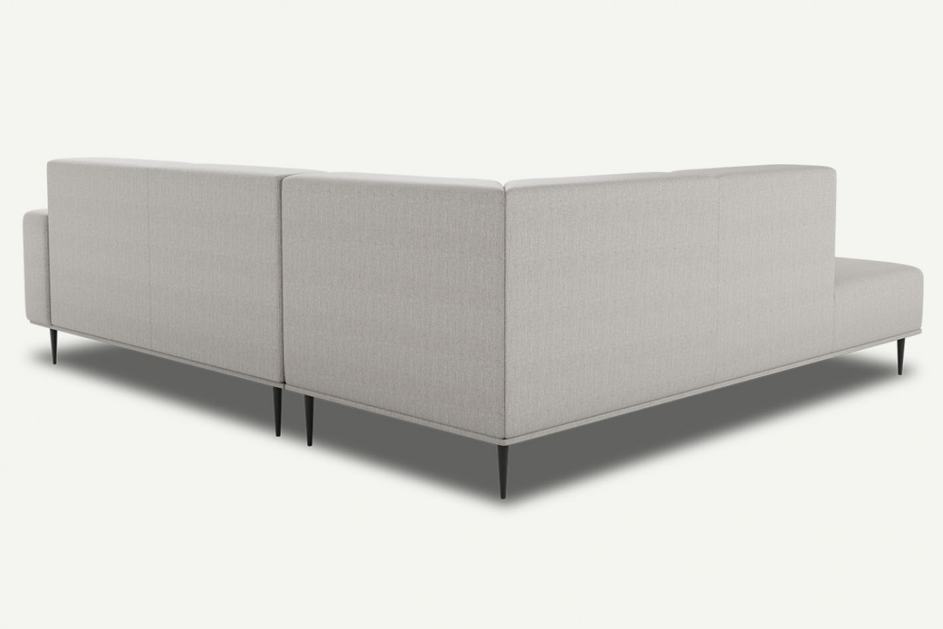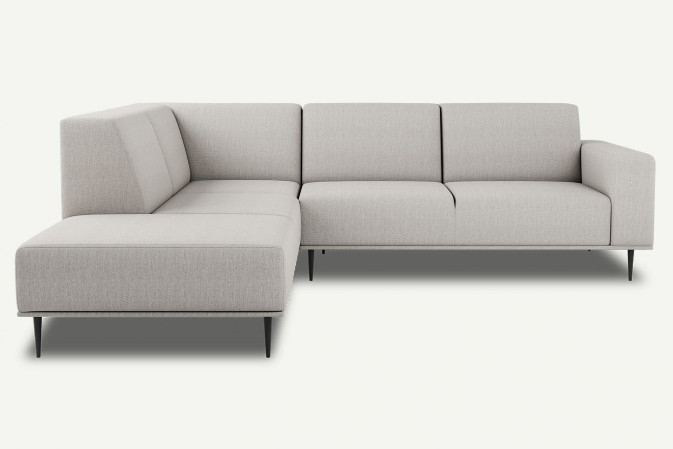 Narożnik Daglas 252 cm to połączenie komfortu i estetyki w najlepszym wydaniu. Jego prosta, elegancka forma i czarne metalowe nogi tworzą spójną całość, która doskonale wpisuje się w wystrój współczesnych wnętrz.