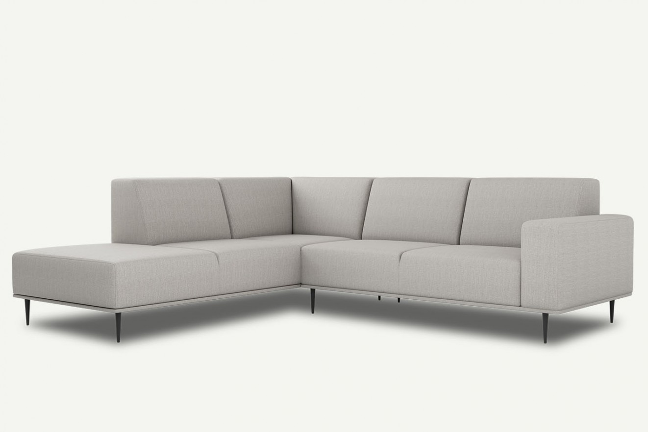 Narożnik Daglas 252 cm to idealny wybór dla osób, które szukają przestronnego, a zarazem lekkiego wizualnie mebla do nowoczesnego salonu. Jego geometryczna, prosta forma została oparta na smukłych metalowych nogach malowanych na czarno, dzięki czemu narożnik prezentuje się subtelnie i elegancko nawet w większych wnętrzach.