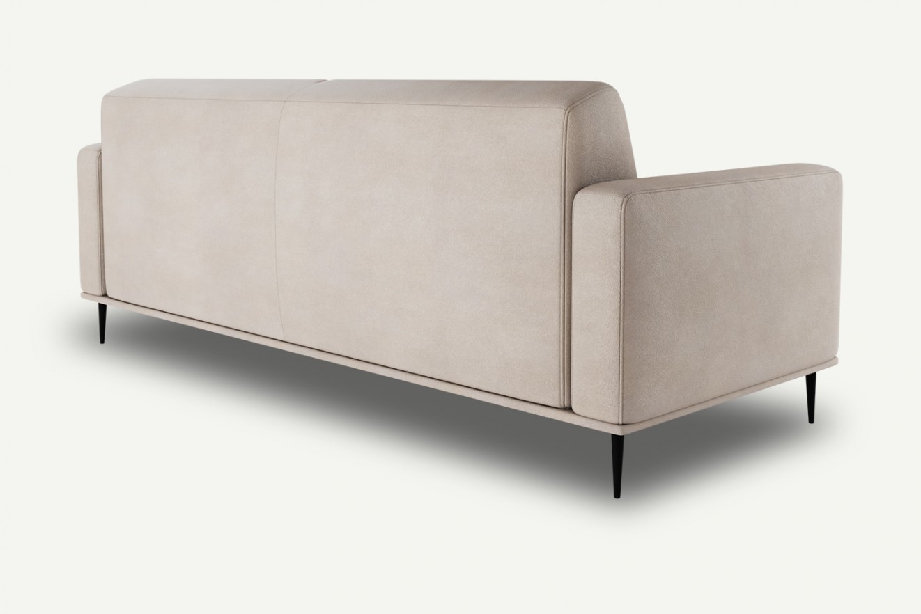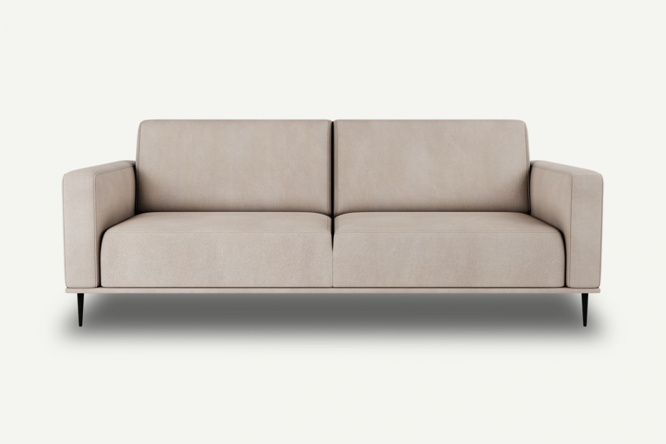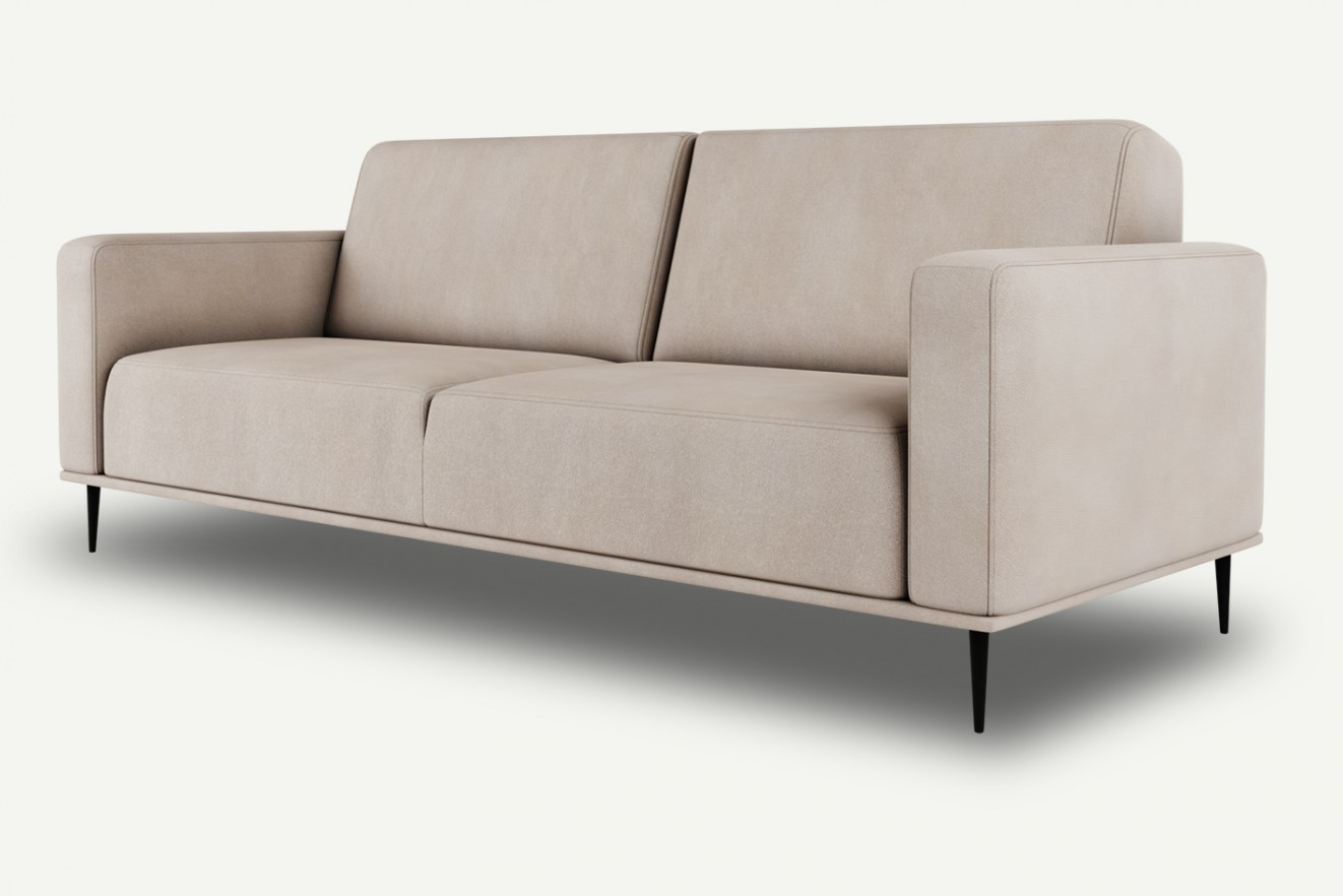 Sofa Daglas 220 cm to elegancka, przestronna sofa dla trzech osób, zaprojektowana z myślą o codziennym komforcie. Jej prosta, nowoczesna forma i czarne metalowe nogi idealnie wpisują się w styl współczesnych wnętrz.