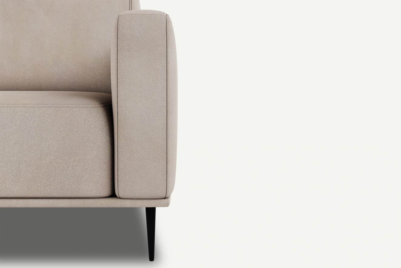 Czarne metalowe nogi podkreślają lekkość bryły i dodają jej elegancji, nie przytłaczając przestrzeni. Sofa Daglas 220 cm świetnie odnajdzie się w nowoczesnych aranżacjach, gdzie liczy się prostota, funkcjonalność i jakość wykonania. To idealny wybór zarówno do domowego salonu, jak i do przestrzeni biurowej czy strefy lounge.