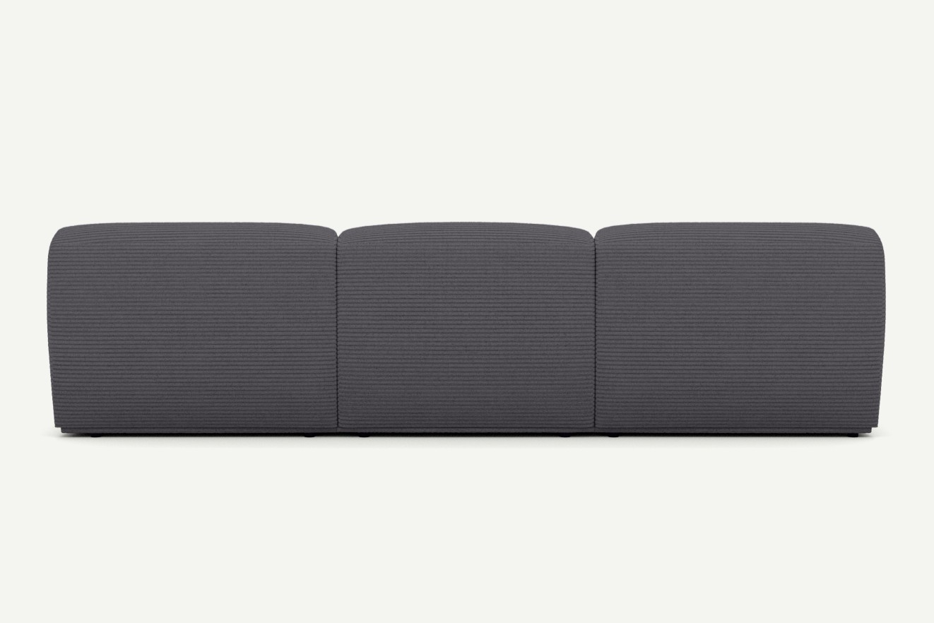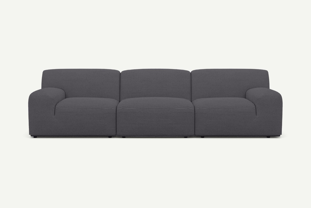 Układ składa się z modułu bocznego, szerszego elementu środkowego oraz segmentu zakończeniowego, dzięki czemu sofa oferuje dużo miejsca do siedzenia, pozostając jednocześnie kompaktowa wizualnie. Stabilna konstrukcja i miękkie wypełnienie zapewniają wygodę podczas codziennego odpoczynku, oglądania filmów czy spotkań z bliskimi.