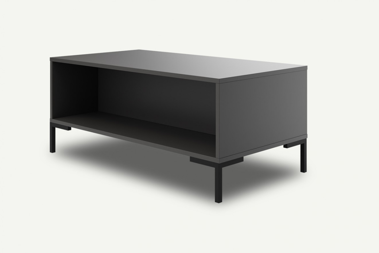 Stolik kawowy Klara został zaprojektowany jako praktyczne uzupełnienie strefy wypoczynkowej. Jego prosta, nowoczesna forma sprawia, że łatwo dopasowuje się do wielu aranżacji, a solidna konstrukcja gwarantuje wygodne użytkowanie na co dzień. Podniesienie blatu na wysokich czarnych nogach nadaje stolikowi lekkiego, minimalistycznego wyglądu, jednocześnie zapewniając stabilność.