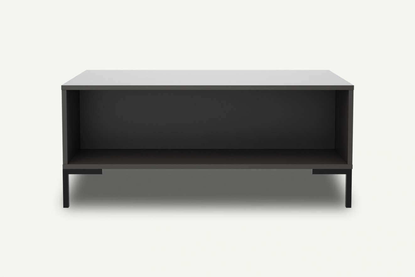 Stolik kawowy Klara to nowoczesny i funkcjonalny mebel na wysokich czarnych nogach. Stabilna konstrukcja i praktyczna forma sprawiają, że świetnie odnajduje się w przestrzeni salonu. Stolik wysyłany jest w całości i nie wymaga montażu.
