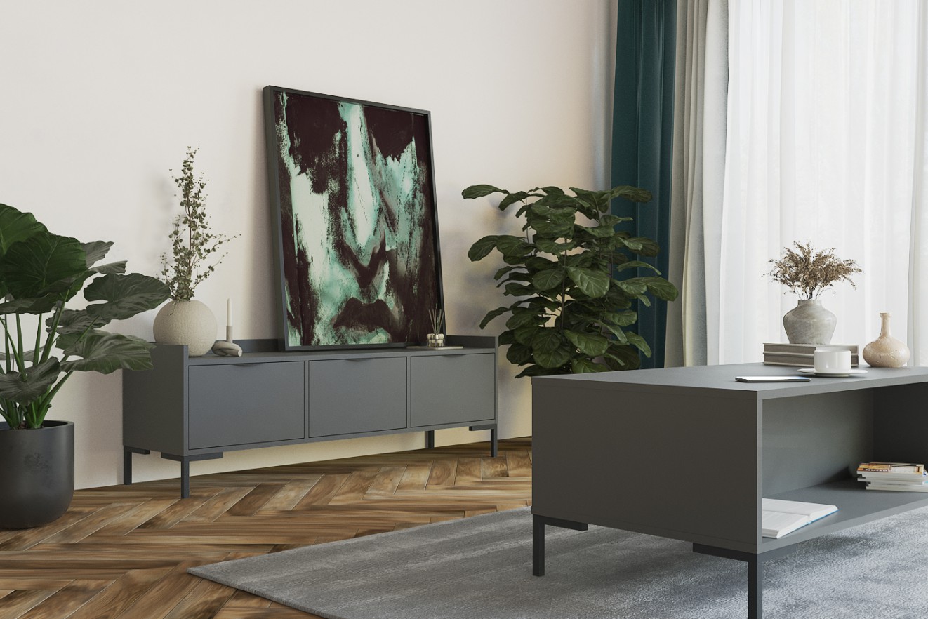 Blat oferuje wystarczająco dużo miejsca na codzienne akcesoria — napoje, piloty, książki czy dekoracje. Stolik można z powodzeniem wykorzystać jako dodatkową przestrzeń roboczą lub element uzupełniający zestaw wypoczynkowy. Gładkie powierzchnie są łatwe do utrzymania w czystości, co sprawia, że mebel dobrze sprawdza się w intensywnie użytkowanych wnętrzach.