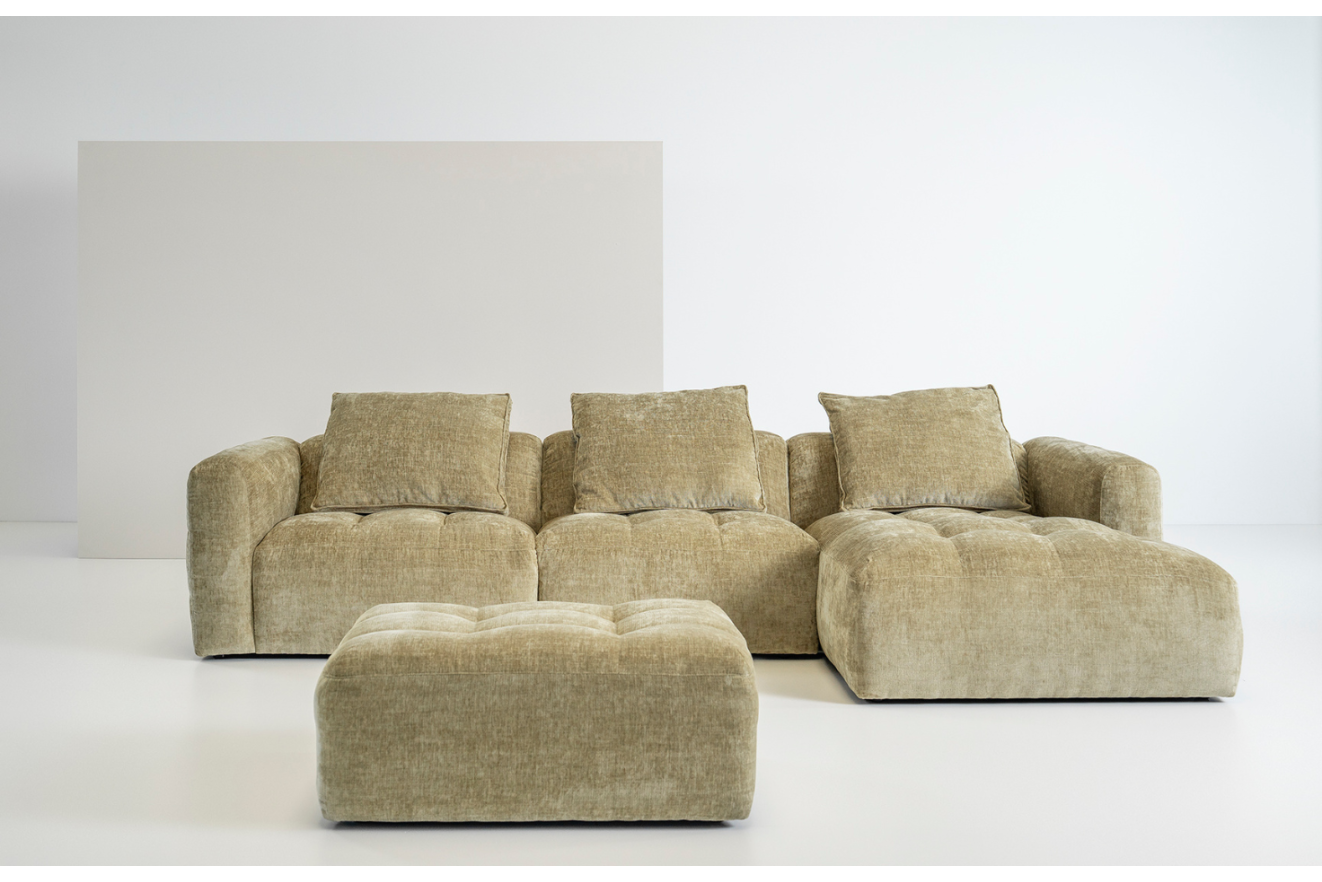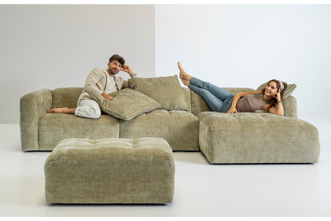 Otomana Mosso to uniwersalny moduł, który doskonale uzupełnia kolekcję i daje możliwość tworzenia wielu praktycznych układów. Może pełnić funkcję wygodnego siedziska do odpoczynku w pozycji półleżącej albo zastąpić klasyczny podnóżek, oferując dodatkowe miejsce dla domowników i gości.