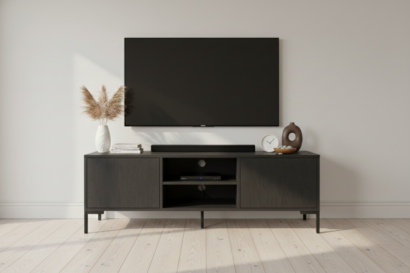 Szafka RTV Form to doskonałe połączenie funkcjonalności i nowoczesnego designu, które sprawdzi się zarówno w salonie, jak i pokoju multimedialnym. Dzięki szerokości 138 cm oferuje optymalną przestrzeń do przechowywania sprzętu elektronicznego, dekoracji i innych akcesoriów.