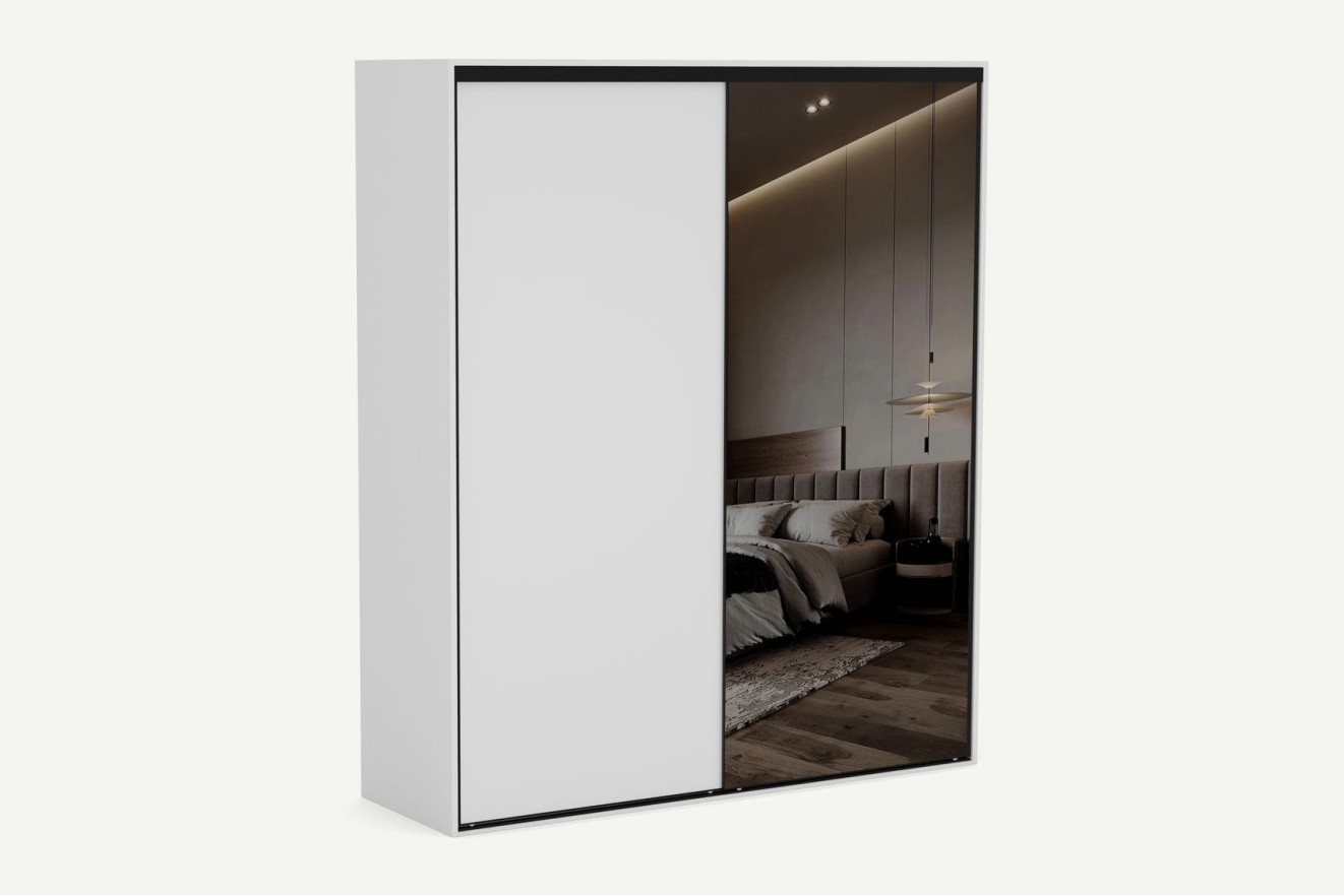 Szafa przesuwna z lustrem o szerokości 200 cm została zaprojektowana z myślą o maksymalnej wygodzie użytkowania i realnej pojemności. Jej ponadstandardowa głębokość to kluczowa cecha, która znacząco podnosi komfort przechowywania ubrań wiszących. Koszule, marynarki, płaszcze czy sukienki swobodnie mieszczą się na wieszakach i nie haczą się o fronty ani nie gniotą podczas zamykania drzwi.