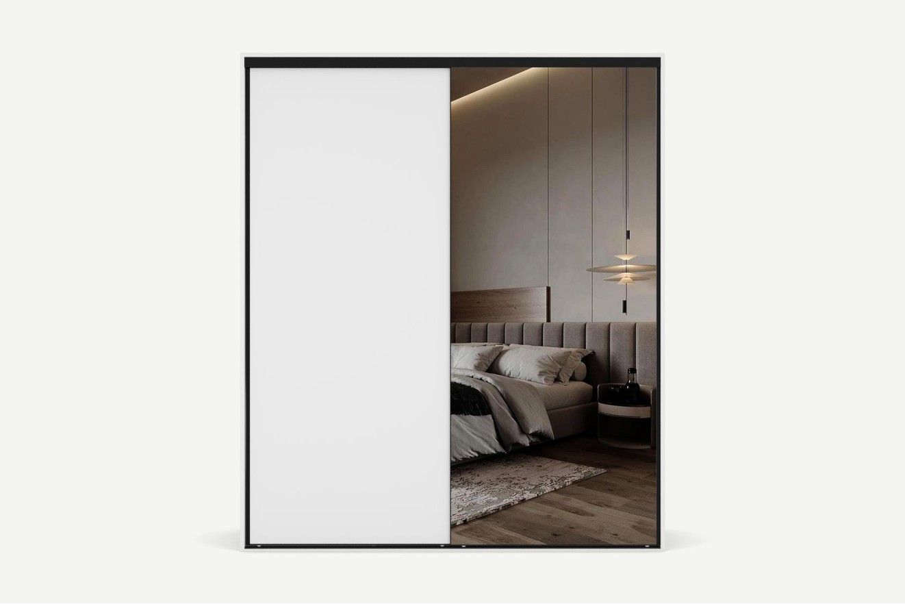 System drzwi przesuwnych sprawdzi się szczególnie w sypialniach i garderobach, gdzie liczy się oszczędność przestrzeni oraz komfort użytkowania bez konieczności zachowania wolnego miejsca przed meblem. Płynna praca prowadnic zapewnia wygodne i ciche przesuwanie skrzydeł.
